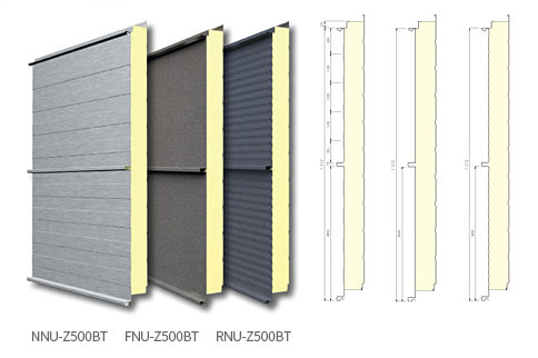 (PVDF/Polyester)Insulator PUR, PIR (35~45kg/m³) Width 1,000mm Production Length 2 ~ 14m (Recommended Length : 7m) Production Thickness Boltless 50, 75, 100, 125mm partition 40, 50, 75, 100, 125, 150mm Roof