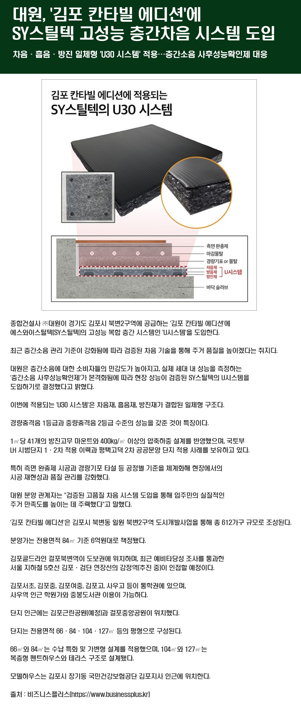 대원, '김포 칸타빌 에디션'에 SY스틸텍 고성능 층간차음 시스템 도입